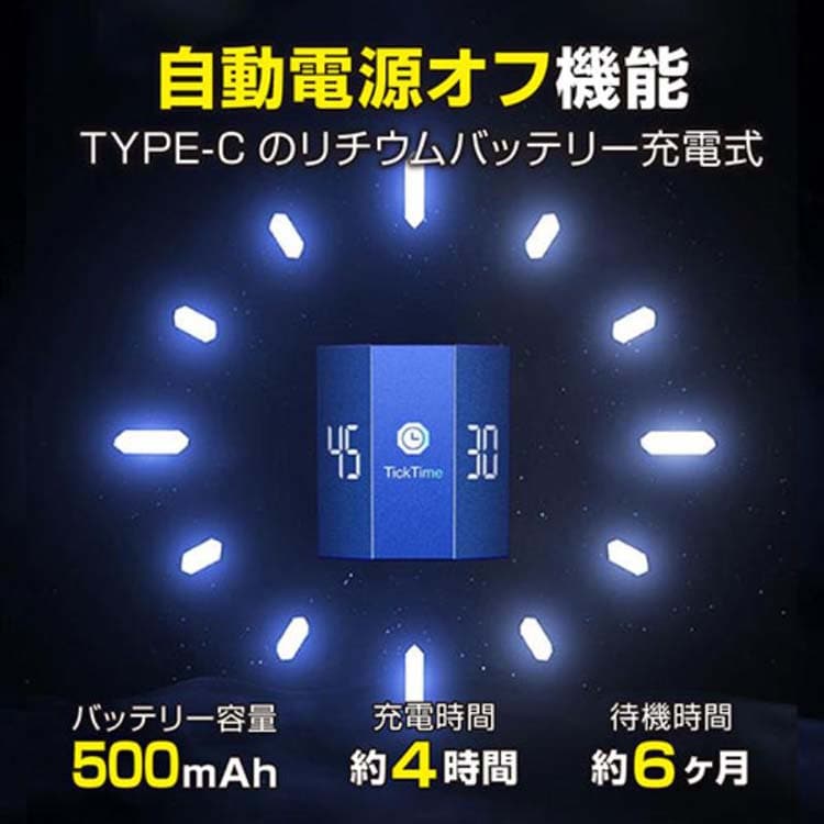 ●Ticktime Maxは、簡単なフリップで7種類のプリセットカウントダウン時間(3/5/10/15/30/45/60分)を提供。