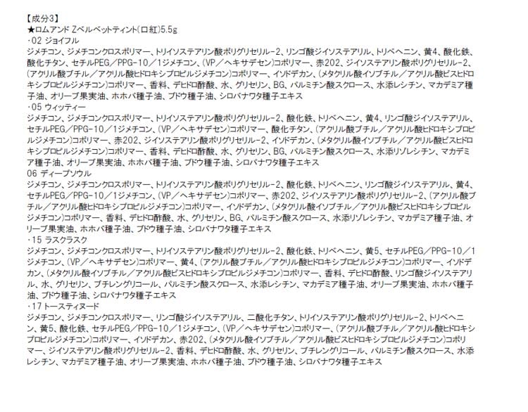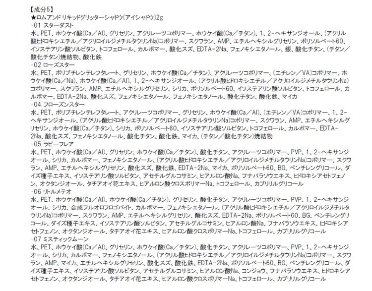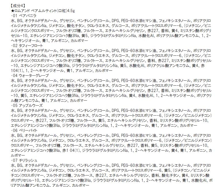 | ・ハンオールブロウカラ:5種(01・02・03・05・08)からランダム1つ ・ザ・ユニバースリキッドグリッターシャドウ:6種(01・02・04・05・06・07)からランダムで1つ ・ジューシーラスティングティント:7種(22・23・24・25・37・38・39)からランダムで1つ ・ゼロベルベットティント:5種(02・05・06・15・17)からランダムで1つ ・ベアムルティント:6種(01・02・04・05・06・07)からランダムで1つ |