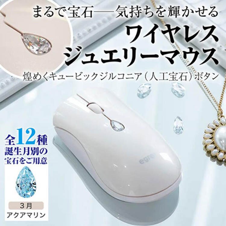 【EGRET ワイヤレスジュエリーマウス 誕生月別の人工宝石ボタン 3月 アクアマリンの商品詳細】