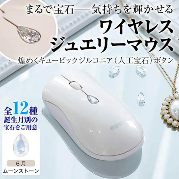 【EGRET ワイヤレスジュエリーマウス 誕生月別の人工宝石ボタン 6月 ムーンストーンの商品詳細】