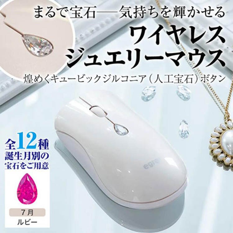 【EGRET ワイヤレスジュエリーマウス 誕生月別の人工宝石ボタン 7月 ルビーの商品詳細】