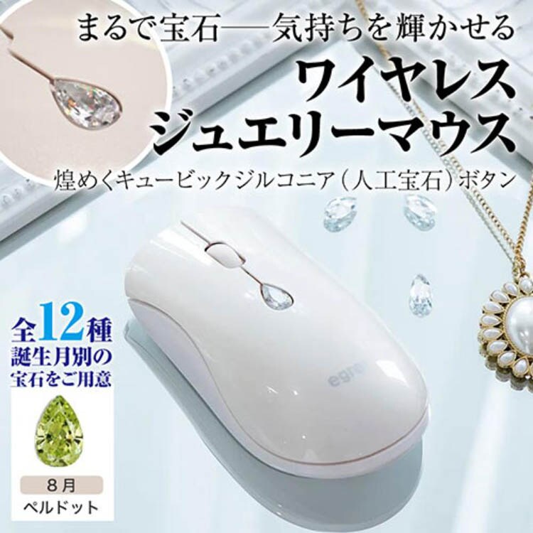 【EGRET ワイヤレスジュエリーマウス 誕生月別の人工宝石ボタン 8月 ペルドットの商品詳細】