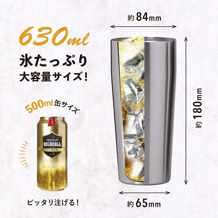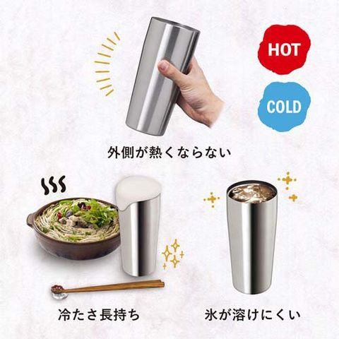 ●真空断熱二重構造で美味しい温度が長持ち。氷が溶けにくく、結露しにくい。