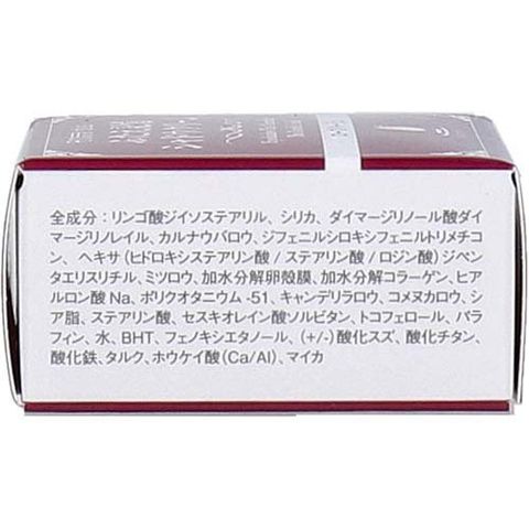 | リンゴ酸ジイソステアリル、シリカ、ダイマージリノール酸ダイマージリノレイル、カルナウバロウ、ジフェニルシロキシフェニルトリメチコン、ヘキサ(ヒドロキシステアリン酸/ステアリン酸/ロジン酸)ジペンタエリスリチル、ミツロウ、加水分解卵殻膜、加水分解コラーゲン、ヒアルロン酸Na、ポリクオタニウム-51、キャンデリラロウ、コメヌカロウ、シア脂、ステアリン酸、セスキオレイン酸ソルビタン、トコフェロール、パラフィン、水、BHT、フェノキシエタノール、(+/-)酸化スズ、酸化チタン、酸化鉄、タルク、ホウケイ酸(Ca/Al)、マイカ |