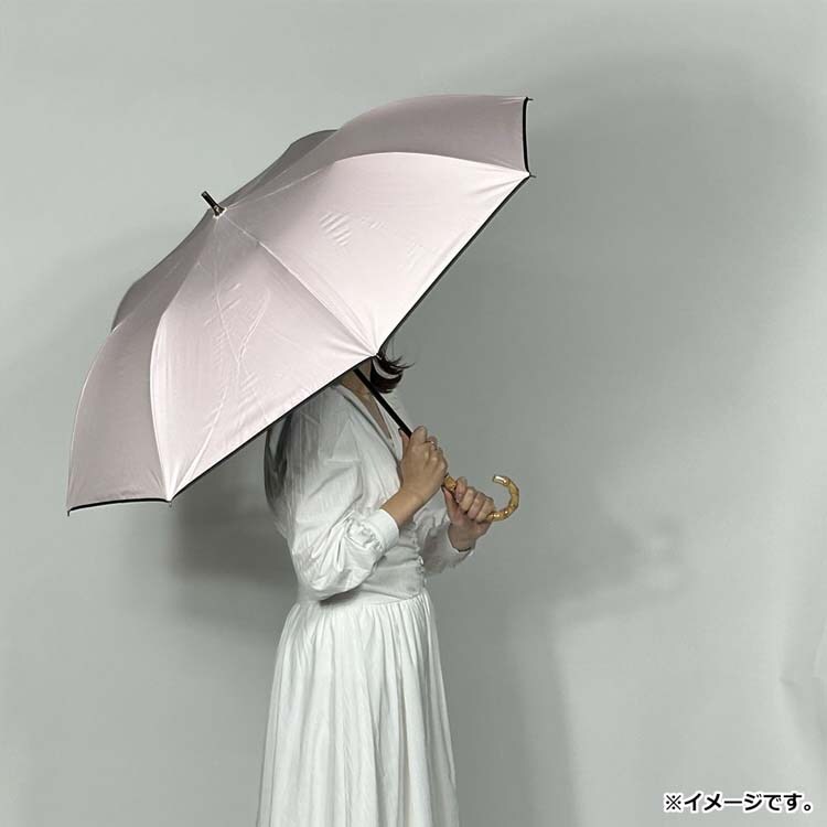 晴雨兼用ショートワイド傘 竹手元 裏黒コーティング 無地裾パイピング ピンク (1本)