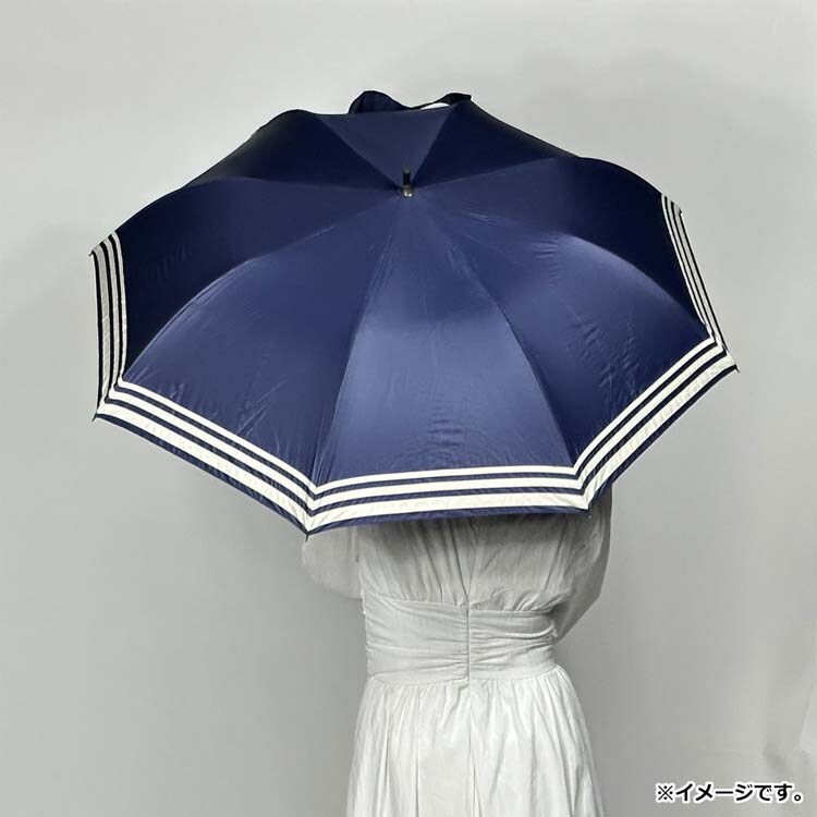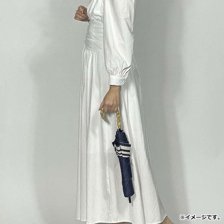 晴雨兼用ショートワイド傘 竹手元 裏黒コーティング マリンボーダー ネイビー (1本)