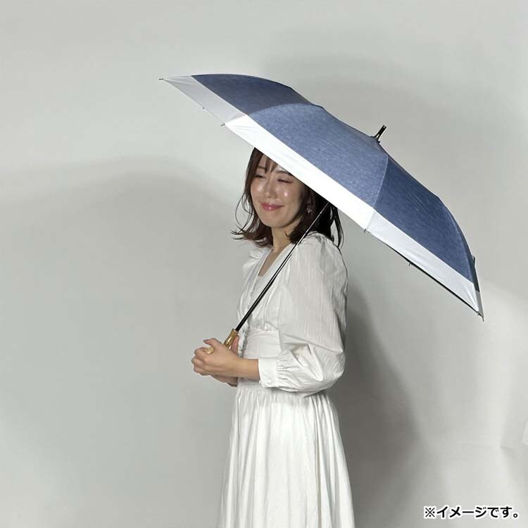 晴雨兼用ショートワイド傘 裏黒コーティング ダンガリー風 インディゴ×オフ (1本)