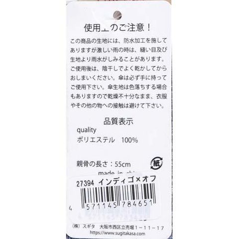 ・傘生地は色落ちする場合もありますので乾燥不十分なまま、衣服やその他の物への接触は避けて下さい。