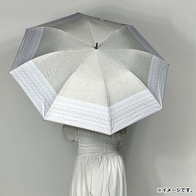 晴雨兼用ショートワイド傘 リネン風無地×リバーレース ベージュ×オフホワイト (1本)