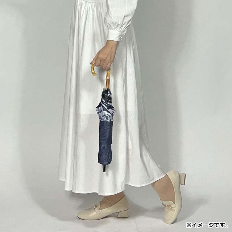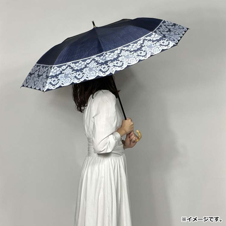 晴雨兼用ショートワイド傘 リネン風無地×リバーレース ネイビー×オフホワイト (1本)