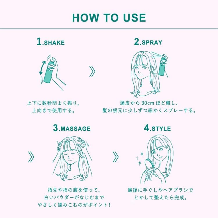 ●スタイリング前に髪の根元や髪全体にスプレーしてブラッシングすれば、サラサラヴェールパウダー※が髪をサラサラにコーティング。