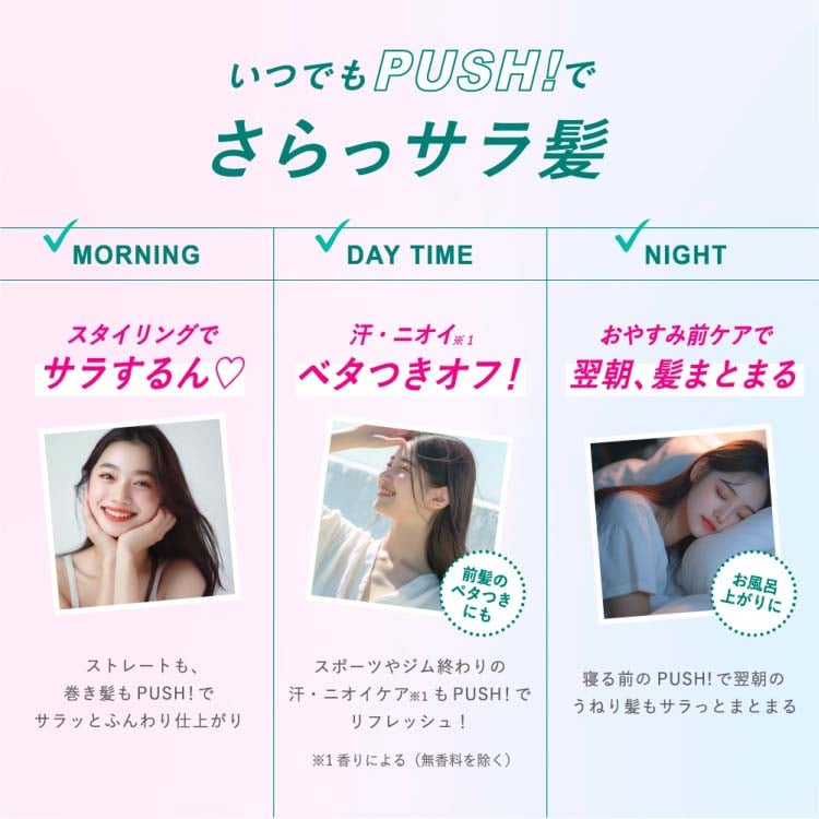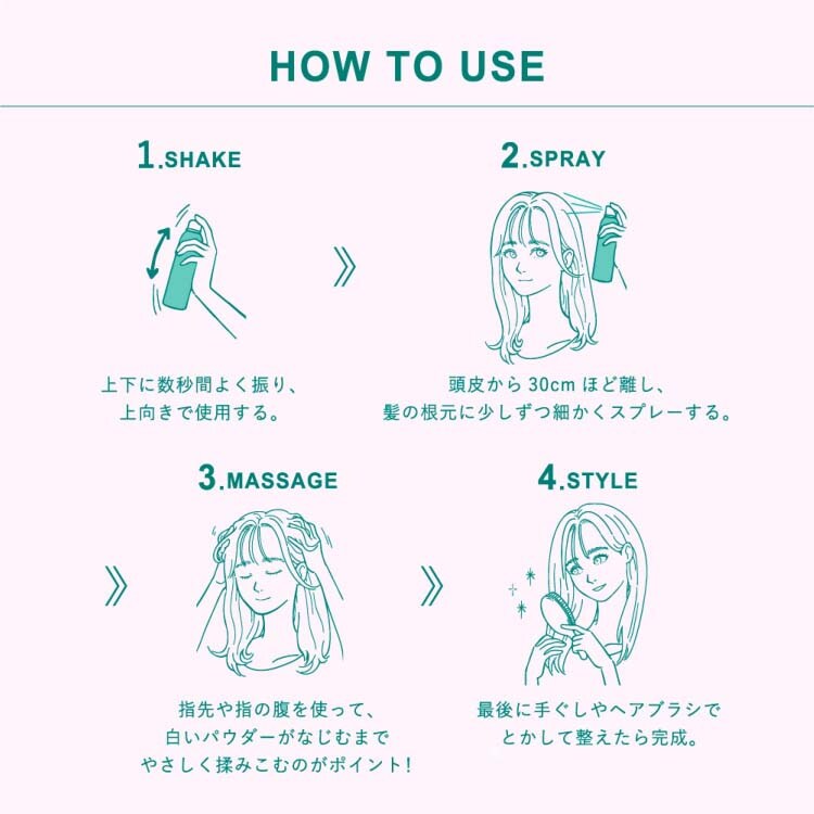 ●スタイリング前に髪の根元や髪全体にスプレーしてブラッシングすれば、サラサラヴェールパウダー※が髪をサラサラに。