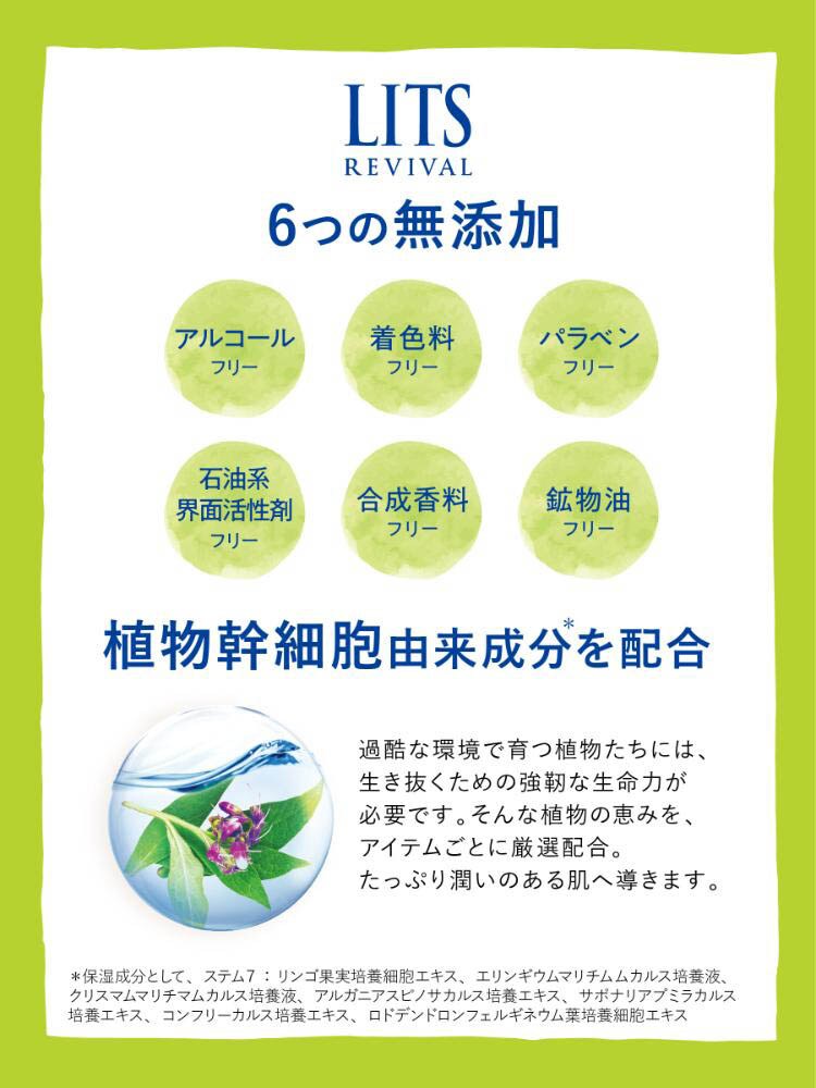 *リンゴ果実培養細胞エキス(保湿)、エリンギウムマリチムムカルス培養液(保湿)、クリスマムマリチマムカルス培養液(保湿)、アルガニアスピノサカルス培養エキス(保湿)、サポナリアプミラカルス培養エキス(保湿)、コンフリーカルス培養エキス(保湿)、ロドデンドロンフェルギネウム葉培養細胞エキス(保湿)