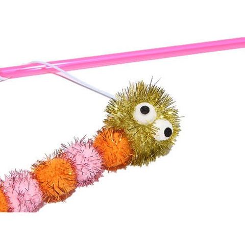 ●「ロッディーズ キラキラワーム」は、キラキラのモール付きポンポンでできたムシ型のおもちゃがゴム紐で繋った猫じゃらしです。
