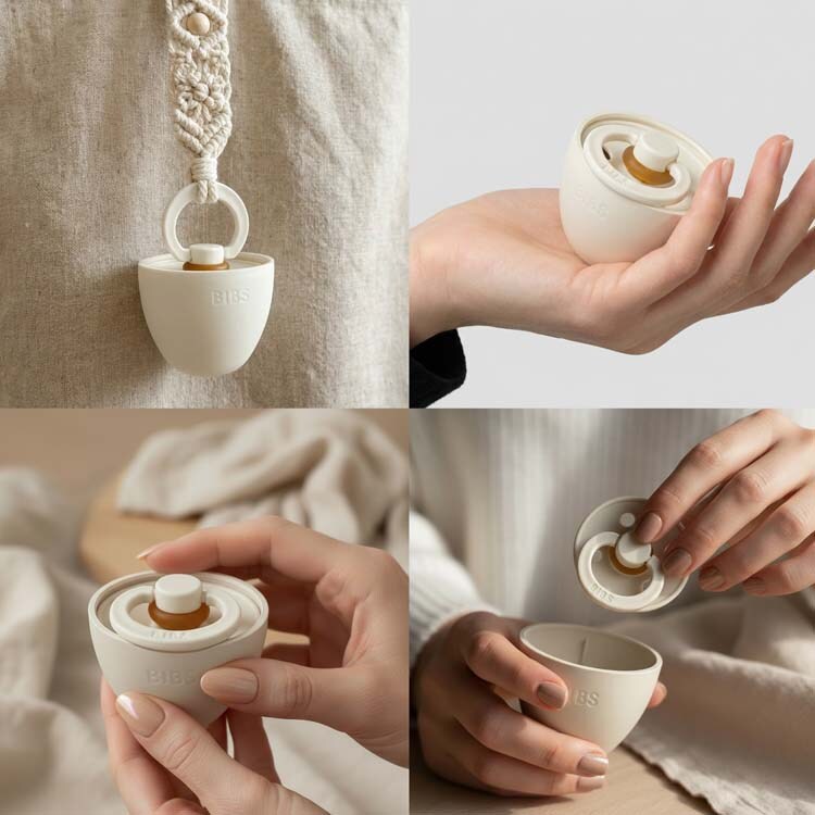 ●おしゃぶりに直接装着できるキャップ付きで、バッグの中でもかさばらず、サッと持ち運べます。