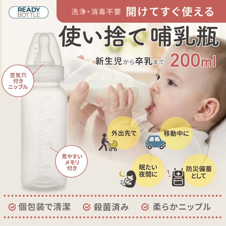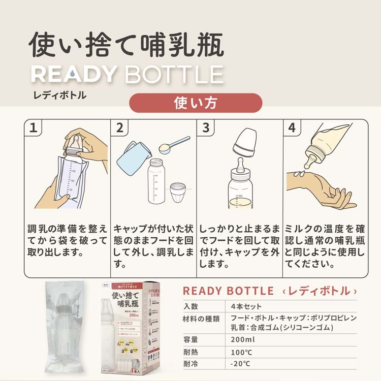 使い捨て哺乳瓶レディボトル 200ml (4本入)