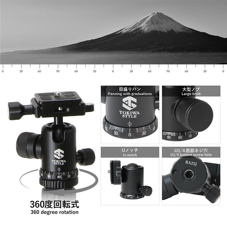 【TOKIWA STYLE カーボン5段トラベル三脚雲台セット TA225CJ+BA25Jの商品詳細】