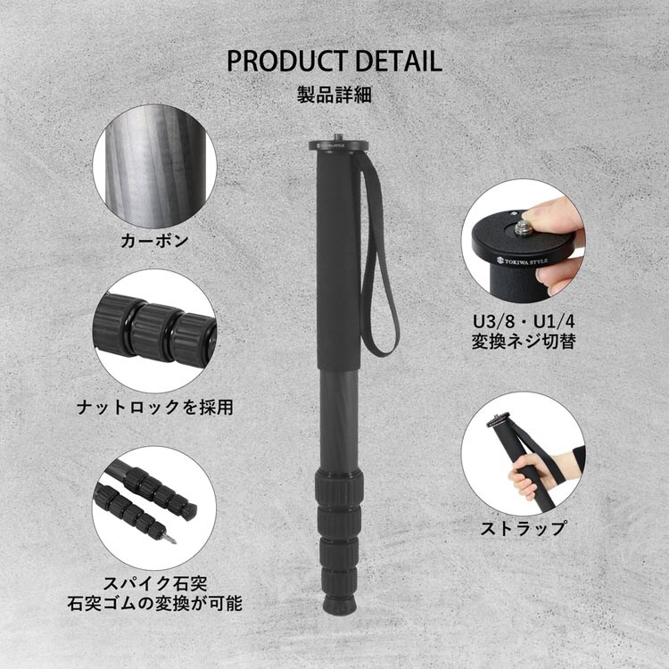 【TOKIWA STYLE カーボン5段一脚 MA365CJの商品詳細】