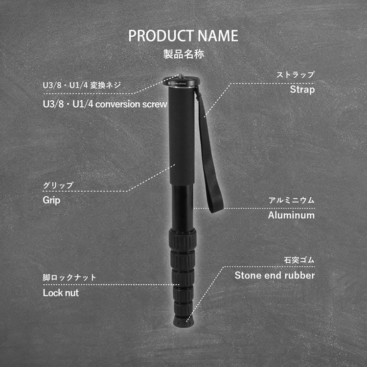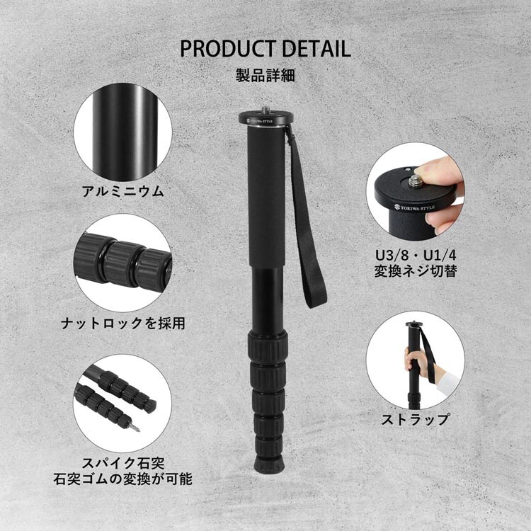 | 付属品:調整用六角レンチ×1、石突スパイク×1、一脚用ストラップ×1 |