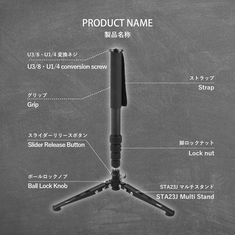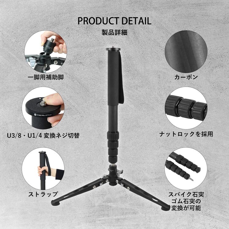 【TOKIWA STYLE カーボン5段一脚マルチスタンドセット MA365CJ+STA23Jの商品詳細】
