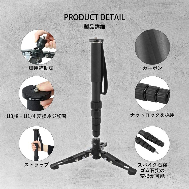 【TOKIWA STYLE カーボン6段一脚マルチスタンドセット MA326CJ+STA20Jの商品詳細】