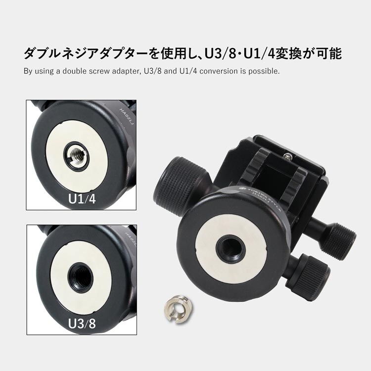 付属品:イックシューQSA-54HJ、調整用六角レンチ×1、U3/8・U1/4変換アダプタ×1、ネジアダプター用ドライバー×1