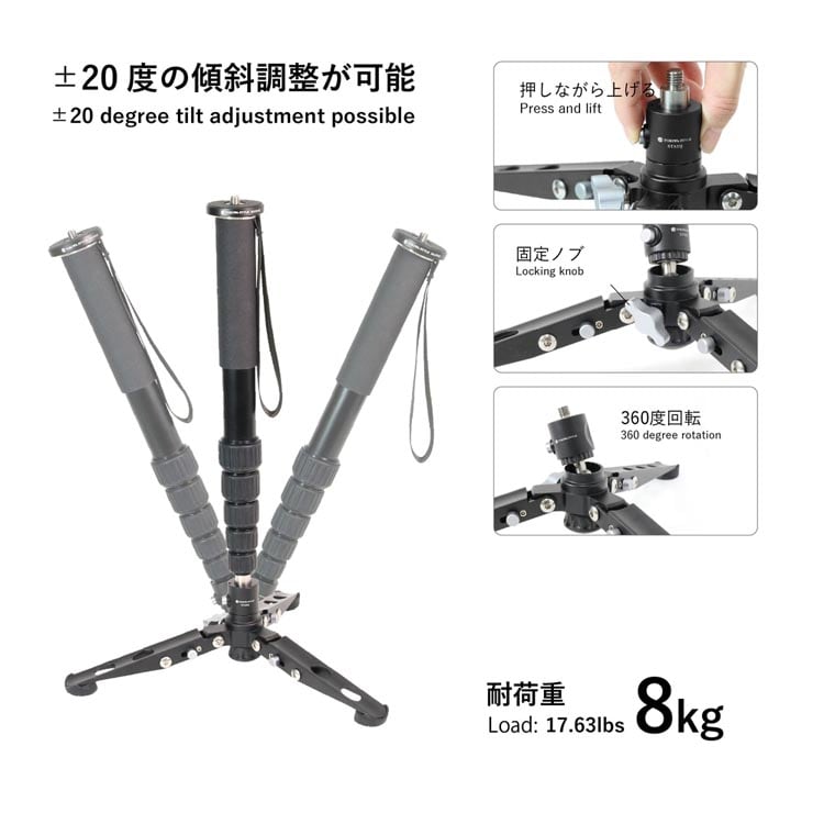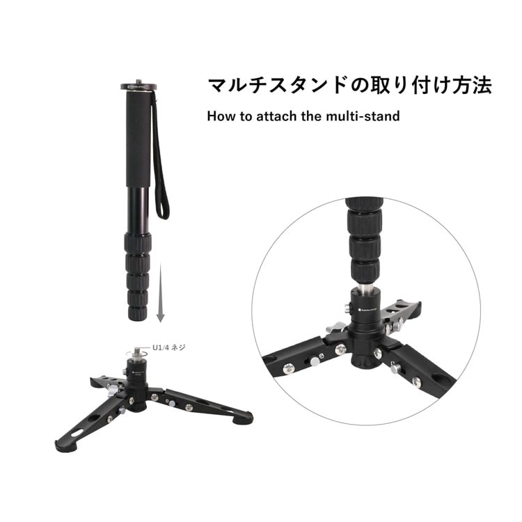 ●「MA326AJ+STA20J アルミ6段一脚マルチスタンドセット」は、安定感を保ちながら移動もスムーズで、旅先や野外での撮影に最適です。