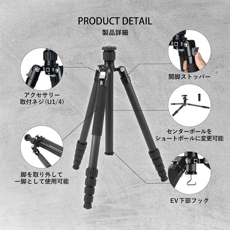 【TOKIWA STYLE カーボン5段トラベル三脚 TA255CJの商品詳細】