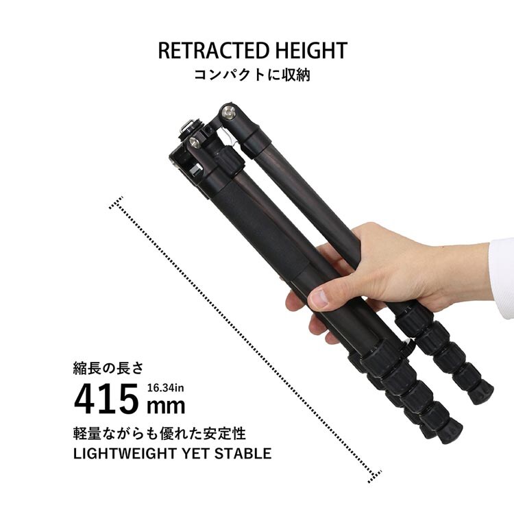 ●堅牢且つ軽量なカーボン素材で作られており、長時間の撮影や移動が楽々です。