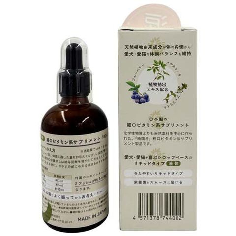 | 粗タンパク:1.5%以上、粗脂肪:1.5%以上、粗繊維:0.1%未満、粗灰分:0.1%以下、水分:53%以下、カロリー:7.5kcal/3ml |