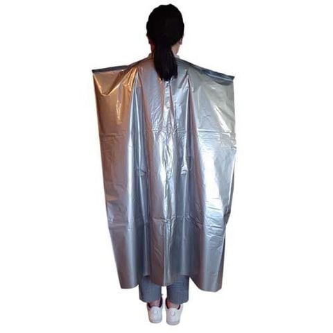 3.ポンチョを被り、和式トイレと同じ姿勢で使用します。用便後、凝固剤を振りかけます。