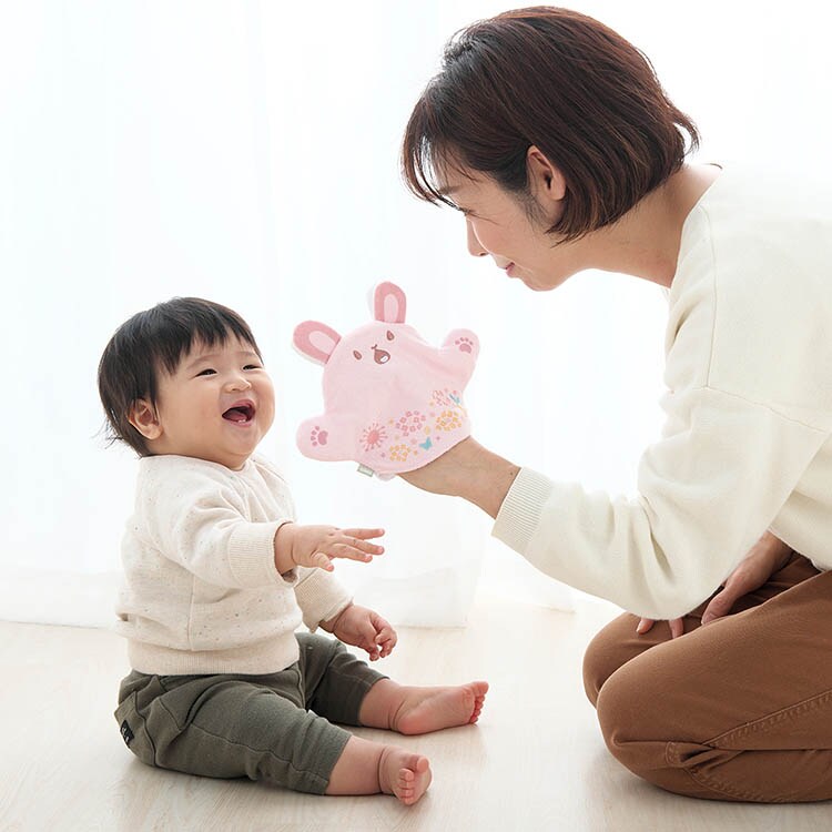 ●いないいないばぁは、世界中で親しまれている遊びで、赤ちゃんの予測力や想像力が養われると言われています。