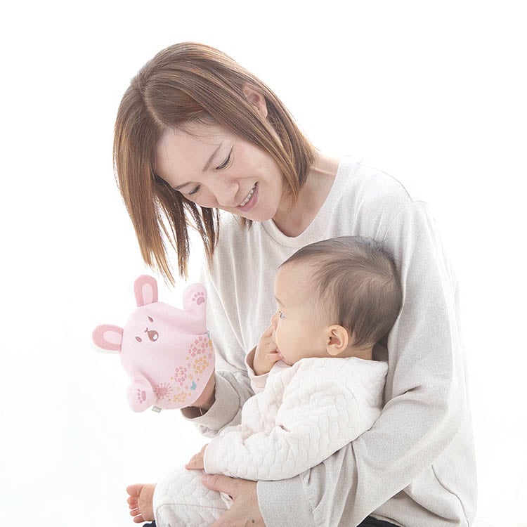 ●表と裏で、くまの表情が違うのでリバーシブルを活かした「いないいないばぁあそび」ができ、赤ちゃんの笑顔を引き出します。