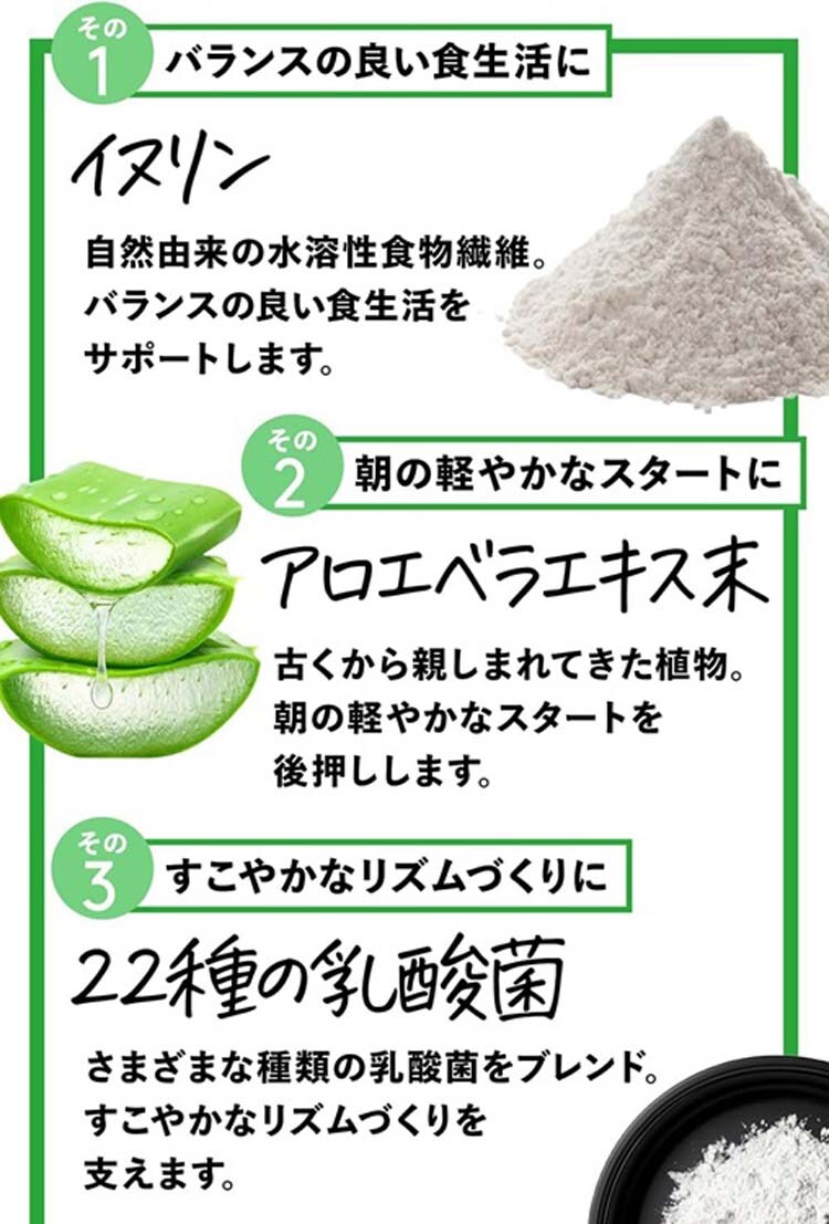 ●22種類の乳酸菌、アロエベラ、チアシードをもたっぷり配合