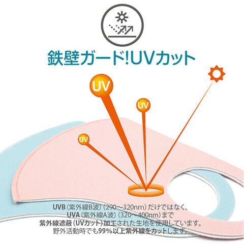 ●UVB(紫外線B波)(290~320nm)だけではなく、UVA(紫外線A波)(320~400nm)まで紫外線遮蔽(UVカット)加工された生地を使用しています。