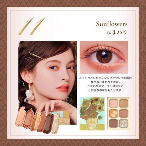 ●フィンセント・ファン・ゴッホの絵画に着想を得たアイシャドウパレット。軽いつけ心地の柔らかいパウダーが肌に溶け込むようになじみ、多彩なパールやラメが瞳を輝きで満たします。