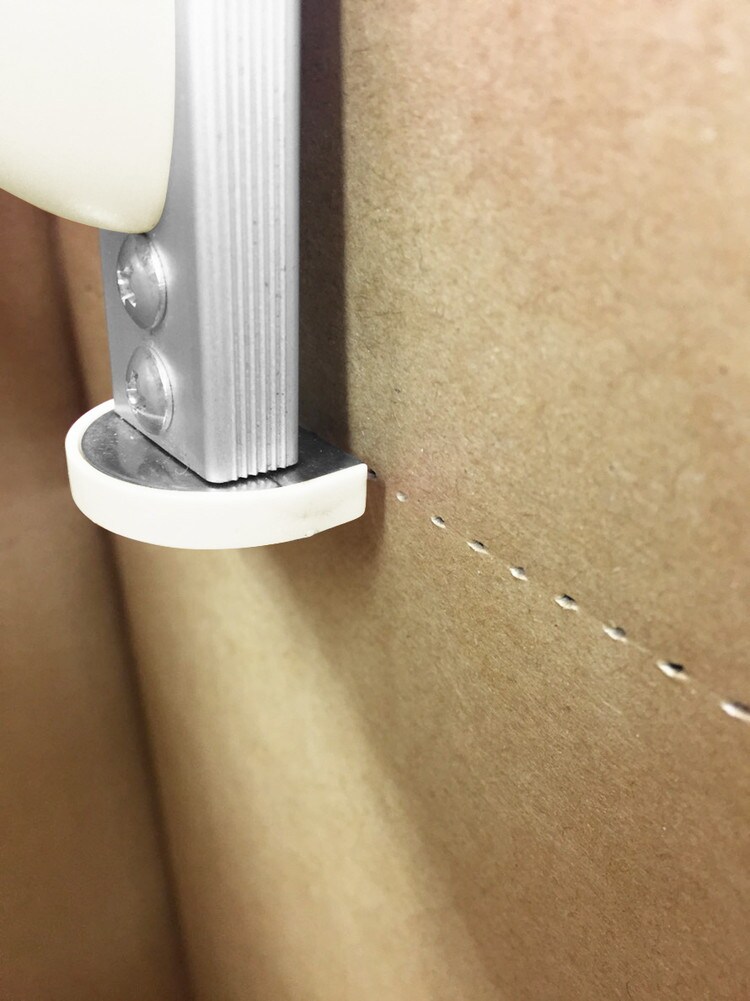 ・ガイドを段ボールのふちに合わせ、水平方向にスライドさせるだけで、平行できれいな折り目を形成できます。
