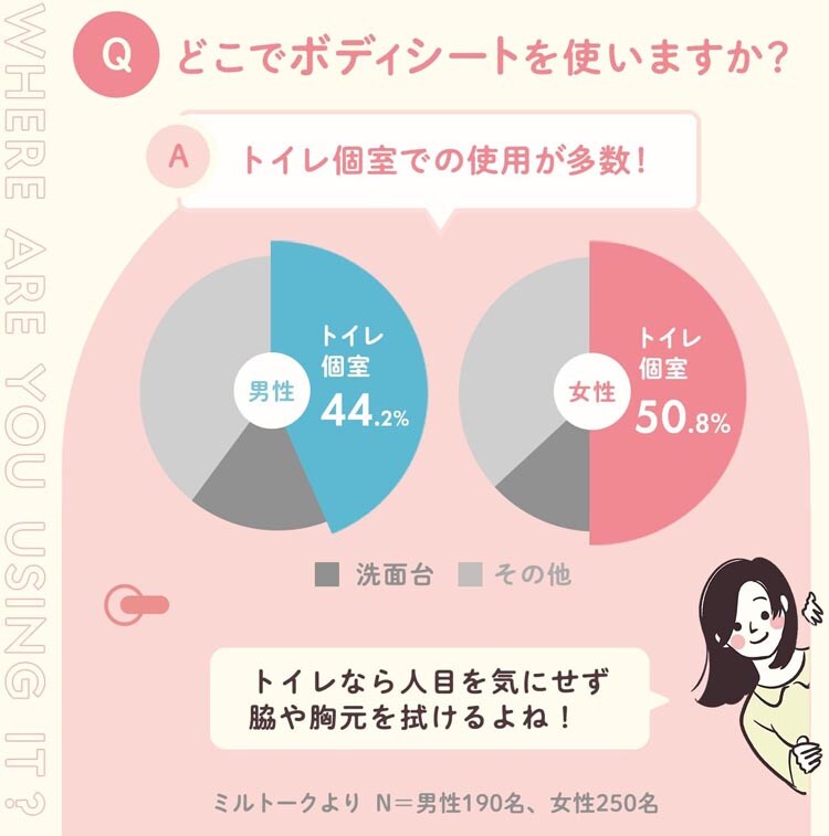 ●見えない場所で、スマートに汗も気持ちもリセット!トイレに流せる汗ふきシート