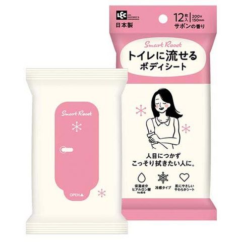 トイレに流せるボディシート 女性用 サボン 冷感タイプ 保湿成分ヒアルロン酸配合 (12枚入)