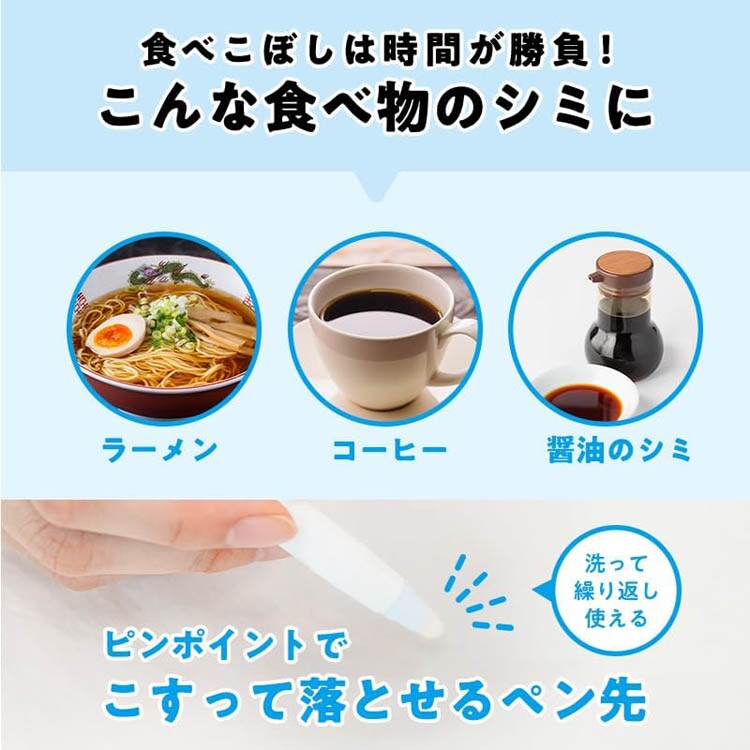 ●ラーメンやコーヒー、醤油のシミに適しています。