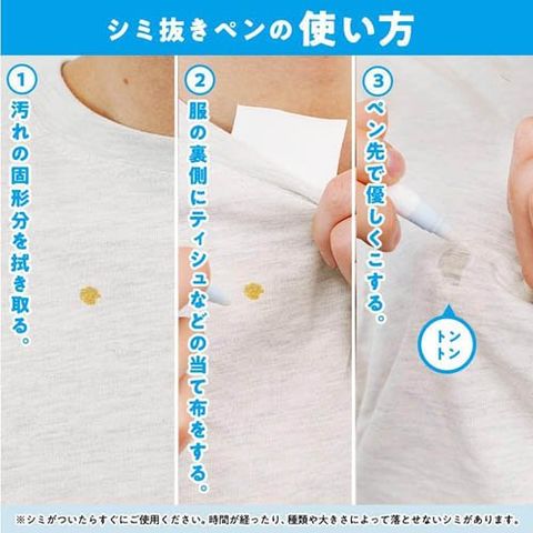 ●ペン先でこすって落とすので衣類を着たままシミを落とせます。