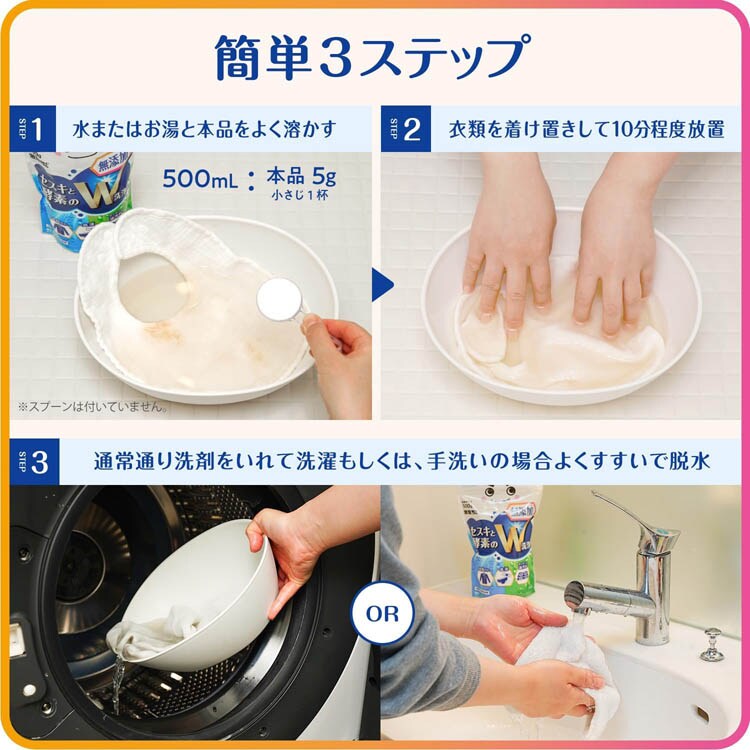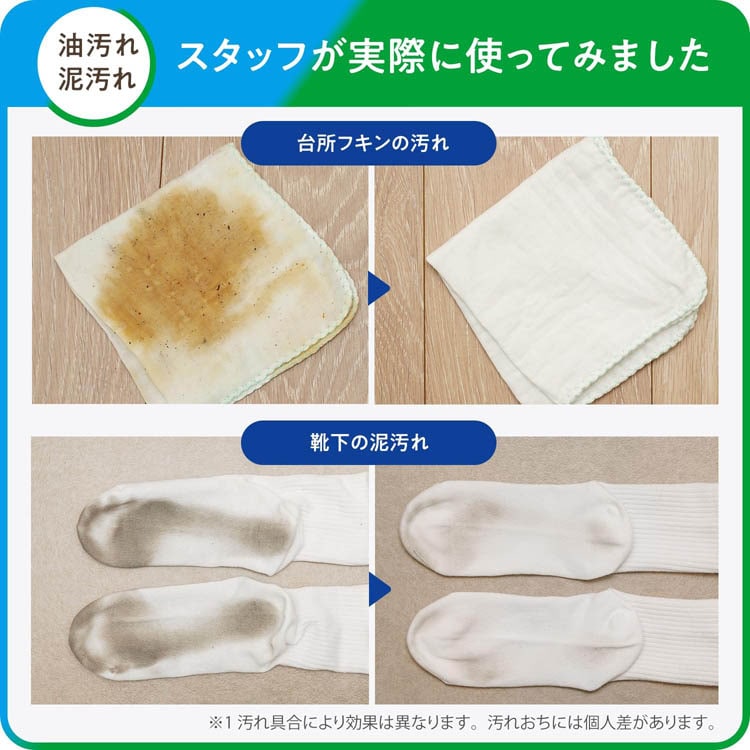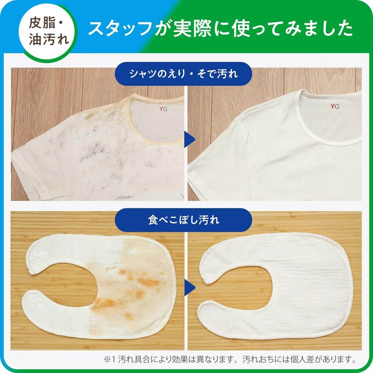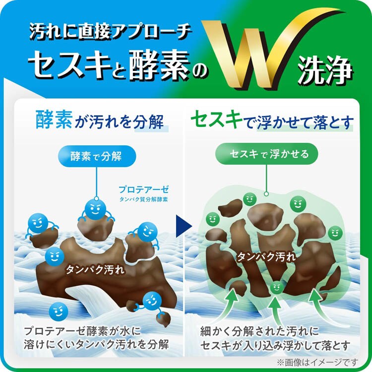 ●セスキと酵素のW洗浄で血液や皮脂などのタンパク質汚れ、油などの酸性汚れを落とします。