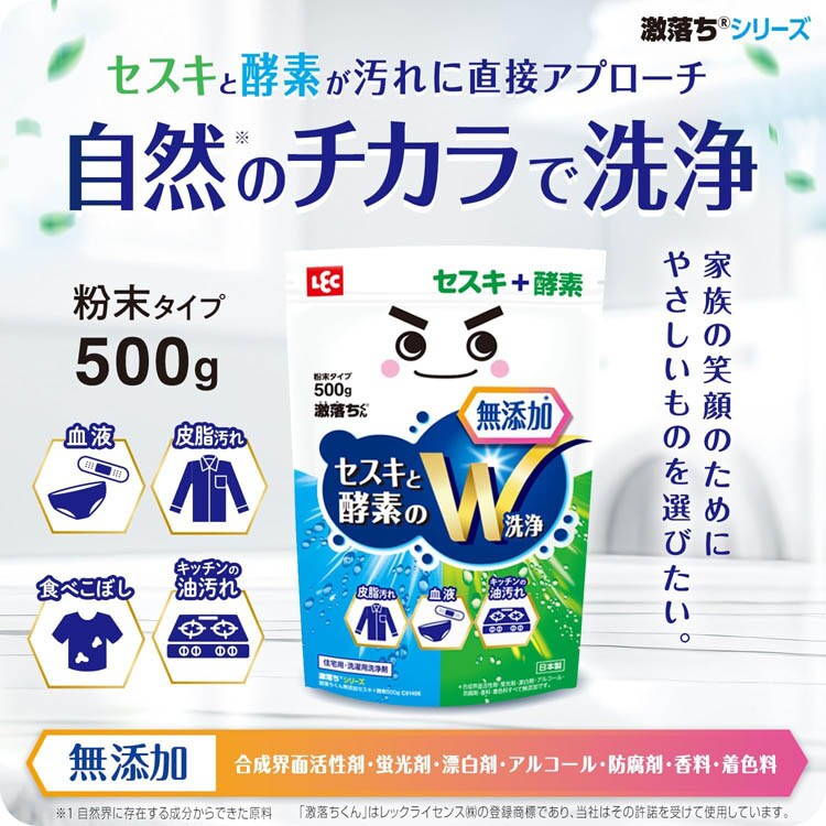 激落ちくん無添加セスキ 酵素 粉末 住宅用洗濯洗剤 皮脂汚れ 血液 キッチン (500g)