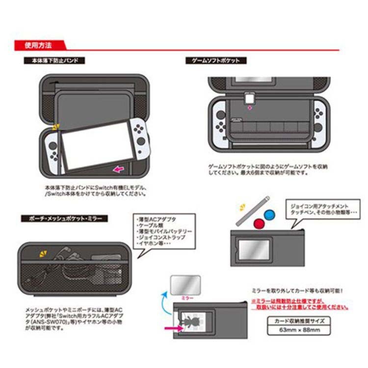 ポーチ表面にカードパスケースを付属しておりamiiboカードや付属ミラーを入れることが可能です。