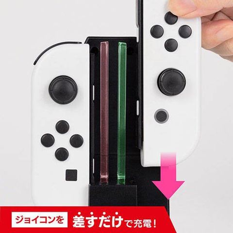 ●ジョイコンは透明アタッチメントを取り付け、LED点灯で充電状況を確認できます。赤:充電中 緑:充電完了