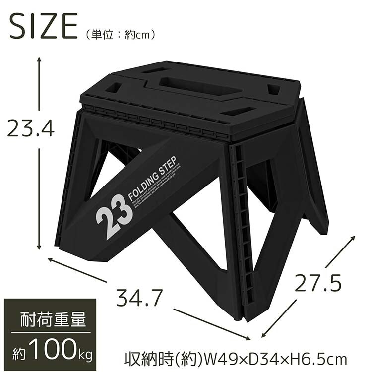 【セノビー ソリッド 踏み台 LG23 折りたたみ ブラック 約34.7×27.5×23.4cm 30784の商品詳細】