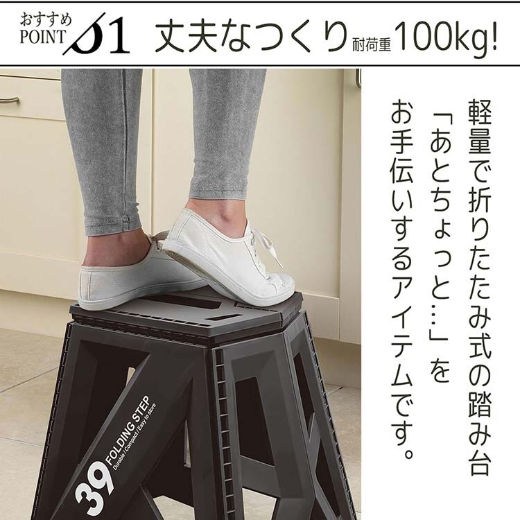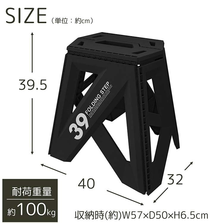 セノビー ソリッド 踏み台 LG39 折りたたみ ブラック 約40×32×39.5cm 30786 (1個)