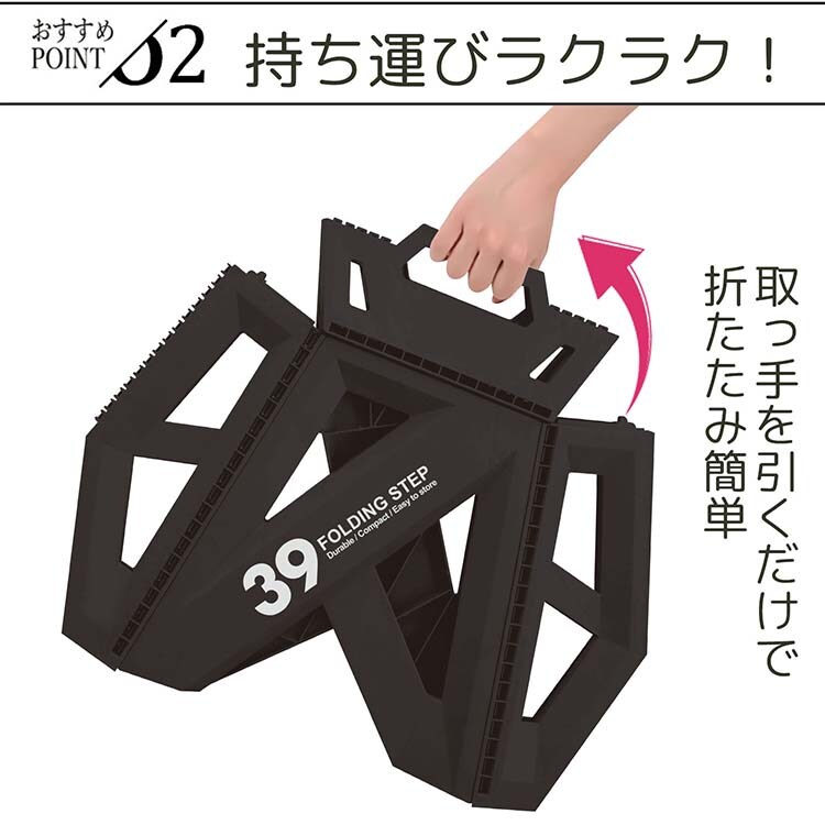 ●簡単に開いて使えて、簡単に閉じてしまえる折りたたみステップ台です。