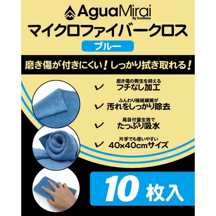 AguaMiraiマイクロファイバークロス 40×40cm ブルー (10枚入)