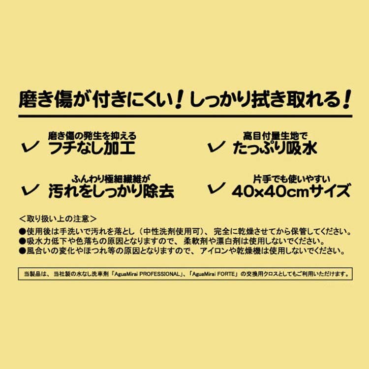 吸水使用の際はクロスを直線的に(一方向に)動かし、水を切るようにして拭き取ってください。